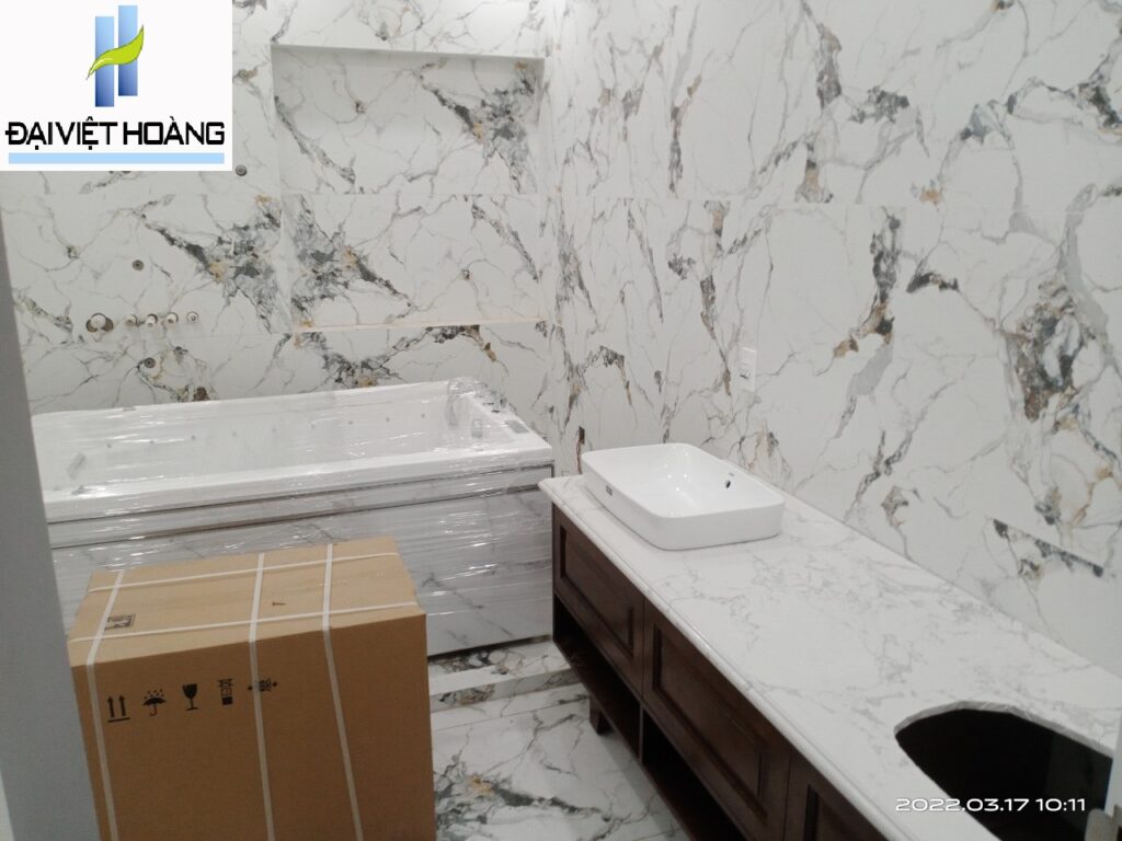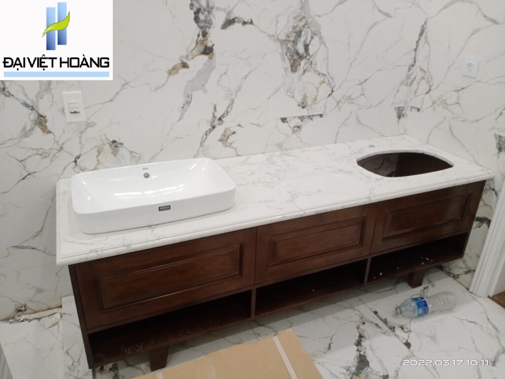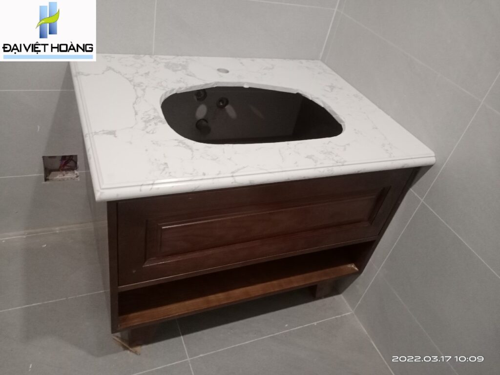 Đá Trắng Nhân Tạo bên e ốp Lavabo cho khách ak