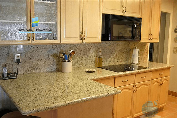 Đặc tính của Đá Granite vàng Bình Định ốp bàn bếp này là cho độ bền cao vì rất rắn chắc, cũng chính nhờ ưu điểm này nên đá hoa cương rất phù hợp để sử dụng ốp mặt bàn bếp, lúc này, việc thái/ chặt đồ ăn sẽ không còn là vấn đề khi bạn thực hiện ngay trên bàn bếp.