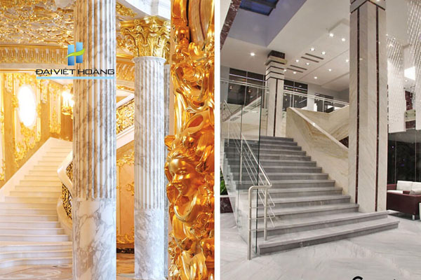 Ngoài đá hoa cương, bạn cũng có thể sử dụng đá marble cũng là loại đá tự nhiên nhưng không bền, không cứng và chống thấm nước tốt như đá granite, đổi lại, với các đường vân tự nhiên xuyên suốt và đặc sắc, hiện nay chúng được rất nhiều người lựa chọn làm đá ốp cột cho hạng mục trong nhà.