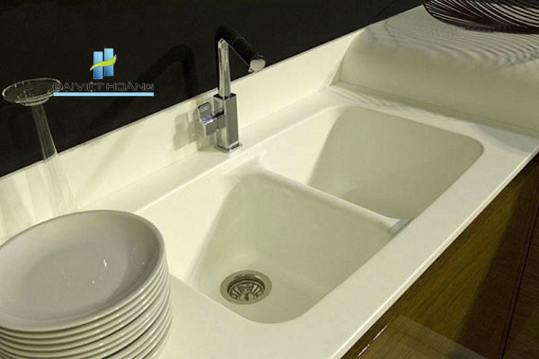 Đá nhân tạo ốp bàn chậu gồm nhiều kiểu dáng với các thiết kế phù hợp cho không gian nhà bạn. Việc lựa chọn được một chiếc chậu rửa ưng ý không phải là điều dễ dàng. Chậu rửa sử dụng đá nhân tạo đang được ưa chuộng bởi chất lượng ngày càng được khẳng định. Tính đa dạng thiết kế thể hiện ở việc đá nhân tạo có thể uốn cong mặc dù độ dày của đá cực cao. Một điểm ấn tượng từ loại đá này. Vì có thể dễ dàng uốn cong nên bạn hoàn toàn có thể gia công đá, tạo nên nhiều kiểu thiết kế khác nhau phù hợp với sở thích của bạn, cũng như biến bàn chậu lavabo của gia đình bạn trở nên đẹp và lung linh hơn.Đá nhân tạo có độ cứng hơn so với đá tự nhiên. Do vậy sử dụng chúng làm chậu rửa, chúng ta không cần phải băn khoăn quá nhiều.