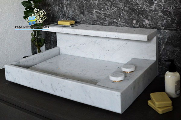 Đá tự nhiên làm bàn Lavabo màu nhẹ như trắng, màu ghi tạo cảm giác dịu nhẹ, thoải mái và thư giãn