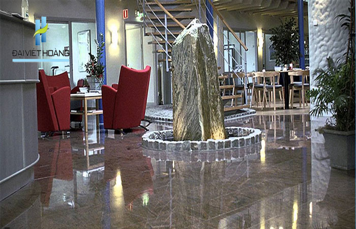 – Chống trầy xước cực kì tốt: đá hoa cương hay các loại đá tự nhiên khác cứng hơn gạch nên khả năng chống trầy xước là hoàn hảo. Tuy nhiên, tùy từng loại đá với các độ cứng khác nhau mà khả năng chống trầy xước cũng không giống nhau. Đá càng cứng bạn càng nên lát ở những nơi có mật độ đi lại nhiều, điển hình như sảnh chờ của các trung tâm thương mại, hàng lang, hiên bên ngoài. Còn các loại đá mềm hơn như đá marble, bạn sử dụng lát ở trong phòng ngủ, phòng khách,… Trong trường hợp, bạn sử dụng vật nhọn chà xát trên mặt đá lát nền làm chúng bị xước, cũng đừng quá lo lắng vì đá che dấu các vết này tốt hơn gạch rất nhiều đặc biệt là các loại đá tối màu.